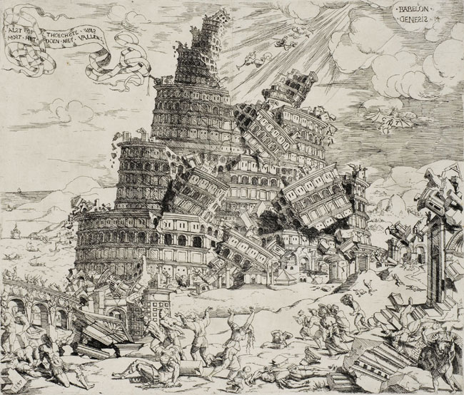 קריסת מגדל בבל ציור הולנדי מן המאה ה-16