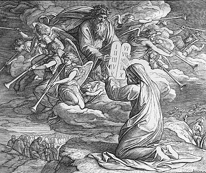 משה מקבל מאלוהים את לוחות הברית במעמד הר סיני. ציור משנת 1850 של  Julius Schnorr von Carol
