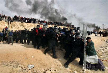 הרבה אנשים חיכו לרגע הזה. היה ברור שאם הוא יעבור חלק – המאבק תם. הוא התרגש קצת, כמו לפני שהתחיל לקרוא בתורה בזמן הבר-מצווה שלו. תגיד את זה, הוא עודד את עצמו, תגיד את זה והם כבר יבינו שזה התחיל. "כאן מפקד כוחות הפינוי", הוא אמר, "הגיע זמן פינוי", הכריז. "אנחנו מעריכים מאוד את העמידה האיתנה והלגיטימית שלכם עד הרגע האחרון. השהות שלכם הינה בניגוד לחוק. אני מבקש מכם להתפנות בלא צורך בהפעלת כוח".