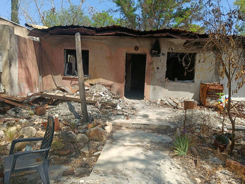 מראות החדרים בהם הסתתרו הסטודנטים קשה מלהכיל. הציוד כולו נבזז ומה שנותר, עלה באש. בחוץ, אפשר לראות חתולים רעבים לאוכל ולחברת אדם. הציפורים מצייצות. אושוויץ, אבל בצבעוני. כוחות המוות שפקדו את הקיבוץ נוקו, אבל לא עד הסוף. בתים שנשרפו עומדים על תילם המפויח, על כולם כתובות גרפיטי צה"ליות ששרטטו הכוחות שהגיעו להוציא את התושבים. יש תושבים שכבר חזרו, אבל הקיבוץ שומם.